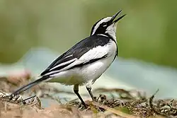 Le comportement territorial de la bergeronnette pie suit le même modèle. En hiver, les individus défendent des tronçons de berges de rivière et arpentent systématiquement ces territoires à la recherche d'insectes échoués. Cependant, elles présentent la particularité d'accepter l'aide d'un individu satellite et ainsi de diviser le temps de défense par deux[4].