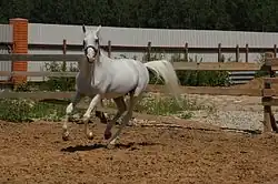 Basilick, étalon Tersk de robe gris argenté. | |