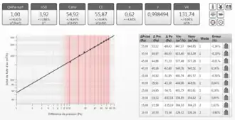 Une fois les points positionnés sur un graphique en représentation logarithmique, on peut réaliser ensuite une régression linéaire des couples [ débits de fuites / pression différentielle ] selon la méthode des moindres carrés, ce qui permet de connaître le débit de fuite, quelle que soit la différence de pression entre l'intérieur et l'extérieur du bâtiment.
