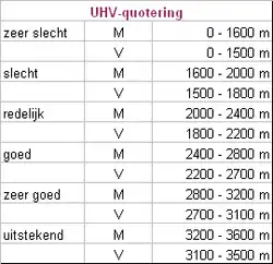 | 15-16 | M | ≥ 2800 m | 2500 - 2799 m | 2300 - 2499 m | 2200 - 2299 m | < 2200 m |