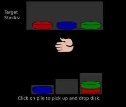 Dans les premiers problèmes, les exigences en planification sont minimes et une stratégie de passage immédiat à l'action sans planifier est possible; dans les problèmes de niveau moyen de difficulté, une analyse des moyens par rapport au but est requise, puisque la stratégie simple de passer immédiatement à l'action ne serait efficace que dans le cas où le premier déplacement effectué serait un déplacement non évident à première vue; enfin, dans les problèmes plus difficiles, la planification est particulièrement complexe[4].