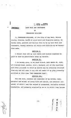 En droit successoral de common law, le testament (anglais : will) peut être défini comme étant un « acte unilatéral et solennel, révocable jusqu'au décès de son auteur (le testateur), par lequel celui-ci dispose de tout en partie des biens qu'il laissera en mourant »[3]. Les règles successorales de common law sont différentes des règles successorales de droit civil.