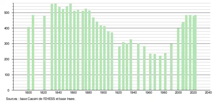 - ↑ Fiches Insee - Populations de référence de la commune pour les années 2006, 2007, 2008, 2009, 2010, 2011, 2012, 2013, 2014, 2015, 2016, 2017, 2018, 2019, 2020, 2021 et 2022.