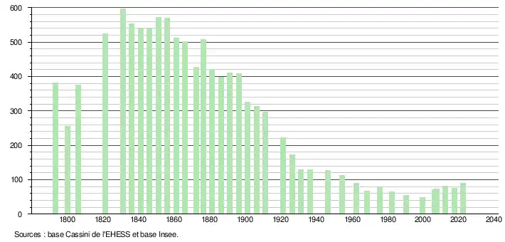 - ↑ Population municipale de référence en vigueur au 1er janvier 2025, millésimée 2022, définie dans les limites territoriales en vigueur au 1er janvier 2024, date de référence statistique : 1er janvier 2022.