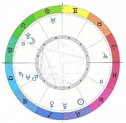 - ↑ directions secondaires : 1 jour = 1 an ; profections : 1 signe = 1 an.
