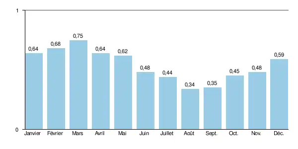 | Mois | jan. | fév. | mars | avril | mai | juin | jui. | août | sep. | oct. | nov. | déc. | année |