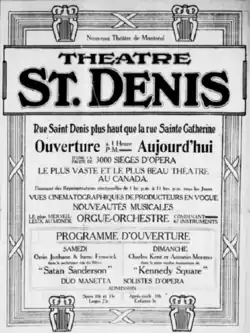 Publicité pour l'ouverture du Théâtre St-Denis en mars 1916