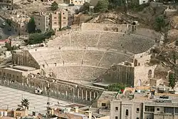 Le théâtre antique romain d'Amman en Jordanie forme avec l'odéon voisin un site archéologique remarquable. Il aurait été construit entre 138 et 161 apr. J.-C. par l'empereur Antonin le Pieux et est le plus grand de Jordanie, avec 6 000 places.