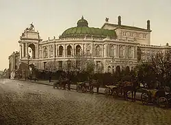 Deux architectes viennois, Ferdinand Fellner et Hermann Helmer commencent à concevoir un bâtiment plus grand en 1883. La première pierre est posée le . Le , le théâtre est terminé. Il a coûté 1 300 000 roubles, nécessité 52 000 t de pierre et fait l'admiration des habitants d'Odessa, au départ révoltés par le coût de l'opération. Il est nommé Théâtre de la ville d'Odessa[5],[6] et est le premier bâtiment de la ville à utiliser l'éclairage électrique de la Compagnie Edison[7]. Afin d'assurer le confort des mélomanes, un système de rafraichissement de l'air est créé en apportant de la glace dans les sous-sols[8].
