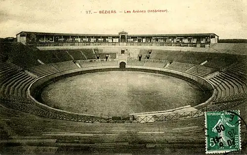 - ↑ Le Gaulois du 30 août 1909, "Les premières - Arènes de Béziers" lire en ligne sur Gallica.