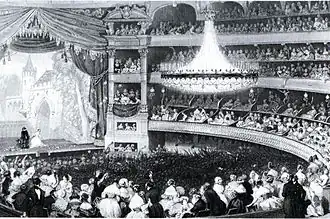 Le , la soprano italienne Marietta Piccolomini chante pour la première représentation de l'opéra de Giuseppe Verdi La traviata au Théâtre-Italien. L'impératrice Eugénie, n'ayant pu assister à ce spectacle salué par les critiques et le public, ordonna à son directeur de l'époque, Calzado, de donner une représentation supplémentaire pour elle et son époux, Napoléon III[réf. nécessaire].