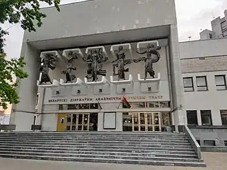 Le théâtre musical de Biélorussie (en russe: Белорусский музыкальный театр; en biélorusse: Беларускі дзяржаўны акадэмічны музычны тэатр) est un théâtre situé à Minsk, capitale de Biélorussie. Il a été fondé en 1970 et jusqu'en 2000 s'appelait le théâtre d'État de comédie musicale de Biélorussie. Sa première saison théâtrale s'est ouverte le 17 janvier 1971 avec le spectacle L'Alouette chante du compositeur biélorusse Iouri Semeniako (1925-1990)[1]. Le théâtre s'est installé définitivement à son emplacement actuel en 1981, au n° 44 rue Miasnikov, dans un édifice terminé en juillet 1981 selon les plans des architectes Oxana Tkatchouk et Vladimir Tarnovski[1]. Le théâtre est dirigé depuis 2019 par Sergueï Poukita.