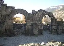 Les fouilles, situées près de la Porte prétorienne, montrent qu'une aire assez vaste était vouée aux jeux et aux amusements. En effet, le théâtre et l'amphithéâtre se trouvent l'un à côté de l'autre et occupent trois îlots adjacents à l'enceinte, tout près du Decumanus maximus, la rue principale de la ville.