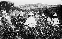 Au début du 20e siècle, l'agronome japonais Arai Kokichiro (ja) introduit la variété de théier assamica et l'acclimate, permettant ainsi la production industrielle de thé noir à destination du marché anglais[3]. En 1903, le gouvernement japonais, qui colonise Taïwan depuis 1895, fonde la station expérimentale de manufacture du thé, devenue depuis la station de recherche et de développement sur le thé ; celle-ci formalise plusieurs centaines de cultivars dont douze cultivars principaux et marque durablement le thé à Taïwan, orienté, comme au Japon, par une classification par cépage et non pas par terroir, comme en Chine continentale[3]. La colonisation japonaise oriente la production de l'île vers l'exportation du thé vert en plus du thé noir[2]. En 1908 commence l'exportation de thé noir vers la Turquie et la Russie ; en 1934, le thé noir est celui le plus majoritairement exporté de l'île, avec plus de 3 000 tonnes[1].