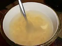 쌍화탕 (ssanghwa tang), chinois 雙和湯 (shuāng hé tāng), littéralement Harmonie de l'énergie et du sang[140]. Le Ssanghwa-tang est une tisane faite à partir d'un extrait vendu tout préparé[141] qui comprend les principales racines médicinales chinoises: de la racine séchée de pivoine de Chine (Paeonia obovata), de Rehmannia glutinosa, d'Astragalus propinquus, d'angélique coréenne (Angelica gigas), de livèche (Levisticum officinale) le tout aromatisé à la cannelle et à la réglisse chinoise, sucré au jujube etc. Il s'agit d'un thé reconstituant dont la formulation est variable..