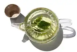 생강차 (saeng-gang cha), chinois 生薑茶 (Shēng jiāng chá). La tisane de gingembre (Zingiber officinale) est une infusion traditionnellement utilisée comme phytothérapie en Asie, sa saveur «est brûlante, poivrée et aromatique, elle réchauffe et rend service à toutes les occasions et saisons de l'année. Elle est stomachique, excitante, anti-infectieuses et sudorifique»[133]. On infuse du gingembre frais ou sec[134]15 min dans l'eau très chaude en la parfumant au zeste d'orange[135]. Cette boisson fait l'objet de publications académiques nombreuses dont son utilité contre le diabète de type 2 (2021)[136], la production de boisson aromatisée à la menthe[137], au thé vert[138].