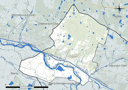 Les communes limitrophes sont Châtres-sur-Cher, Maray, Méry-sur-Cher, Saint-Georges-sur-la-Prée et Theillay.