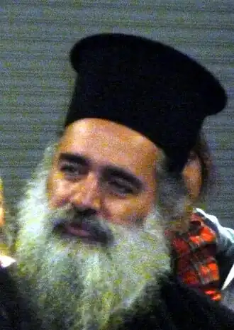 Quant au cas de la visite en Syrie considérée par Israël comme un pays ennemi, nous disons que nous ne sommes pas liés par la position israélienne. Le nombre de personnes appartenant à l'Église orthodoxe grecque en Syrie dépasse le million et le nombre au Liban dépasse le demi-million. Israël n'a pas le droit de nous empêcher de visiter la Syrie et le Liban sous prétexte que ce sont des pays ennemis, surtout que nous entretenons des liens spirituels et nationalistes avec ces pays. Lorsque nous visitons ces pays, nous rencontrons tous les responsables politiques et religieux sans aucune exception. Nous sommes ouverts à tous. Israël n'a pas le droit de prétendre que nous entretenons des relations avec des organisations terroristes parce que ce qu'Israël appelle des terroristes peut être pour nous des nationalistes, des combattants de la liberté. Nous refusons d'accepter les termes dictés par Israël ; par conséquent, ce qu'Israël condamne ou ce qu'il élève n'est peut-être pas nécessairement tel pour nous[14].