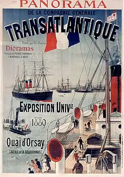 - 1889 : Exposition universelle de Paris : Panorama de la Compagnie générale du Transatlantique accompagné de dioramas peints par Th. Poilpot, F. Hoffbauer, F. Montenard et H. Motte