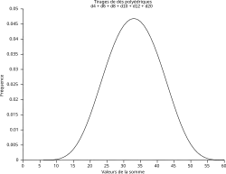 - ↑ On obtient également une courbe en cloche avec tout dé ayant un nombre de faces différent de 6.