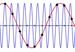 Réciproquement, l'échantillonnage avec des échantillons régulièrement espacés peut décrire un signal à condition qu'il ne contienne aucune fréquence supérieure à la moitié de la fréquence d'échantillonnage, dite fréquence de Nyquist.