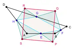 Théorème de Petr-Douglas-Neumann appliqué à un quadrilatère A0 = ABCD. A1 = EFGH est construit en utilisant pour angle au sommet π et A2 = PQRS avec un angle au sommet de π/2. |
