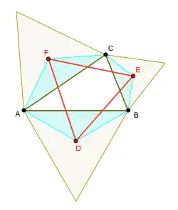 Si des triangles isocèles d'angles au sommet 2kπ/n, pour un entier k avec 1 ≤ k ≤ n − 2 sont érigés sur les côtés d'un n-gone arbitraire A0, dont les sommets sont les sommets d'un nouveau n-gone A1, et si ce processus est répété n-2 fois, mais avec une valeur de k différente pour le n-gone formé à partir des sommets libres de ces triangles à chaque étape, jusqu'à ce que toutes les valeurs 1 ≤ k ≤ n − 2 aient été utilisées (dans un ordre arbitraire), pour former une séquence A1, A2, ... An − 2, de n-gones, leurs centres de gravité coïncident tous avec le centre de gravité de A0, et le dernier, An − 2 est un n-gone régulier.
