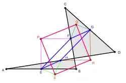 Théorème de Petr-Douglas-Neumann appliqué à un quadrilatère croisé A0 = ABCD. A1 = EFGH est construit en utilisant pour angle au sommet π et A2 = PQRS avec un angle au sommet de π/2. |