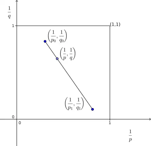 - Les relations qui donnent les exposants intermédiaires p et q sont illustrées géométriquement par la figure ci-dessus.