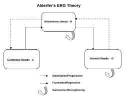 Alderfer a également proposé une théorie de la progression et de la régression pour accompagner sa théorie : il a déclaré que lorsque les besoins d'une catégorie inférieure sont satisfaits, un individu investira plus d'efforts dans la catégorie supérieure (exemple : Si la personne est en mesure de se loger et de se nourrir, elle seras plus encline à développer ses relations inter-personnelles), et lorsque les besoins d'une catégorie supérieure sont frustrés, un l'individu investira plus d'efforts dans la catégorie inférieure (exemple : si la personne à des difficultés dans ses relations avec les autres, elle se repliera sur ses besoins primaires).