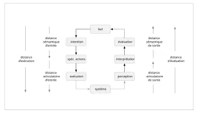 La théorie de l'action définie par le consultant en utilisabilité Donald Norman dans son livre The Design of Everyday Things décrit la psychologie d'une personne réalisant une tâche. Elle propose une modélisation de l'accomplissement d'une tâche en sept étapes allant de l'établissement du but à l'évaluation de l'état du système par rapport à ce but. L'introduction de cette notion de but met en avant des processus de haut niveau. Norman la décrit en anglais comme Seven stages of action, les 7 étapes de l'action.