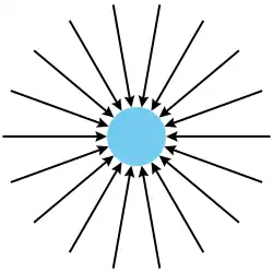 Étant donné que l'on suppose que certaines si ce n'est toutes les particules gravifiques convergeant vers un objet sont soit absorbées soit ralenties par l'objet, l'intensité du flux de particules gravitiques émanant de la direction d'un objet massif est moindre que celle du flux convergeant vers l'objet. On peut imaginer ce déséquilibre de flux de moment, et par conséquent de la force exercée par quelque autre corps dans le voisinage, comme étant distribué sur une surface sphérique centrée sur l'objet (illustration P4). Le déséquilibre de flux de moment sur une surface entièrement sphérique entourant l'objet est indépendante de la sphère encerclante, alors que la surface de la sphère augmente comme le carré du rayon. Par conséquent, le déséquilibre de moment par unité de surface diminue comme l'inverse du carré de la distance.