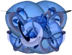 - l'Univers contiendrait plus de trois dimensions spatiales. Certaines d'entre elles, repliées sur elles-mêmes (théories de Kaluza-Klein), passant inaperçues à nos échelles (par une procédure appelée réduction dimensionnelle).