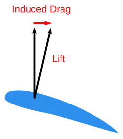 Cette nouvelle ligne portante (ou tourbillon de bout de profil) a un impact majeur, elle modifie l'angle apparent utilisé pour le calcul en deux dimensions. La force par conséquent n'est plus orientée que vers le haut mais un peu vers l'arrière (dans le sens du mouvement du fluide). Cela consomme de l'énergie. Cette composante opposée au mouvement du fluide est donc de la traînée. Cette traînée est appelée traînée induite. De même la portance est un peu plus faible que prévu par la théorie en 2D.