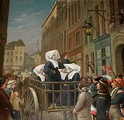 En 1790, l'Assemblée constituante proclame la Constitution civile du clergé. Elle réorganise unilatéralement le clergé séculier français, institue une nouvelle Église (l'Église constitutionnelle), ce qui provoque la division du clergé en clergé constitutionnel et clergé réfractaire. L'année 1793 sera la dernière pour la congrégation des sœurs d'Arras. En effet, l'arrivée du citoyen Joseph Le Bon élu au comité de sûreté général n'offre qu'une solution aux ordres religieux, celle de prêter serment à la Constitution pour sauver leur vie.