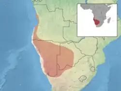 L'espèce est présente dans l'ouest de l'Angola, en Namibie, au Botswana et au nord de l'Afrique du Sud[1].
