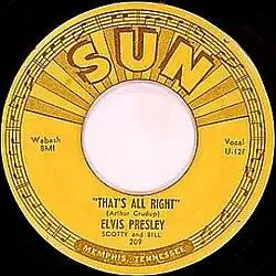 La chanson d'1 minute et 55 secondes sort le de cette même année, en 45 tours et en 78 tours (sous la référence Sun 209) avec un important succès radiophonique local et 20 000 exemplaires de disques vendus. Le disque porte le titre That’s All Right (sans le « (Mama) » du titre original) avec Blue Moon of Kentucky en face B, et les noms « Elvis Presley, Scotty and Bill » (Elvis Presley au chant et à la guitare rythmique, Scotty Moore à la guitare solo, et Bill Black à la contrebasse, sans batterie ni autre instrument).