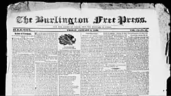 Le Burlington Free Press fait ses débuts en 1827 comme hebdomadaire sous le nom de Free Press Weekly. Avec l'utilisation du télégraphe comme moyen de communication entre la rédaction et ses journalistes, le journal devient un quotidien en 1848[2]. Mais il n'y a pas d'édition du quotidien le dimanche. Le journal est édité le soir.