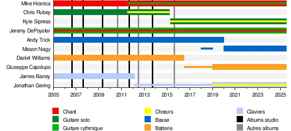- Jeremy DePoyster – guitare rythmique, chant (depuis 2005)