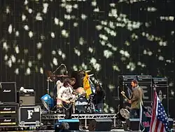 - ↑ Les Wild Tonics se sont produits à tour de rôle sur scène avec le groupe, avec 2 ou 3 membres à la fois.