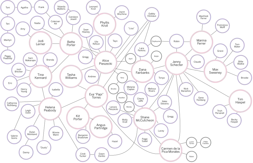 La Charte (en anglais The Chart) est un graphe étiqueté non-orienté, dans lequel les nœuds représentent des personnes et les lignes des liaisons ou des plans cul, qui constitue un élément scénaristique récurrent dans la série[9]. À l'origine, la série devait tourner autour d'une Kit Porter lesbienne, et la Charte devait être tatouée sur son dos. Quand elle a été transformée en personnage hétérosexuel, la Charte a été transformée en un objet physique, créé et maintenu par Alice Pieszecki[7].