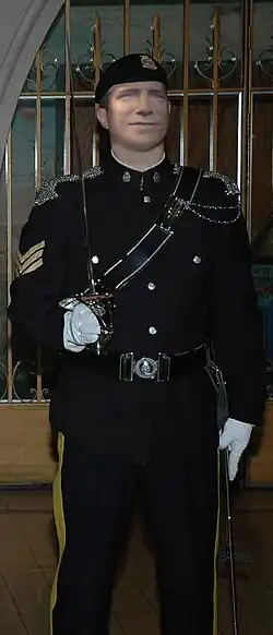 L'uniforme traditionnel des Sherbrooke Hussars est un uniforme de cavalerie d'inspiration britannique du XIXe siècle communément appelé le « blues ». Il s'agit en fait d'une tunique bleue composée d'un veston à collet relevé avec cottes de mailles apposées sur les épaules et d'un pantalon arborant deux bandes parallèles jaunes sur la couture. Cet uniforme est entre autres porté à titre commémoratif par la Garde du Guidon lors de défilés. Le Guidon est le drapeau consacré régimentaire arborant les honneurs de batailles du régiment.