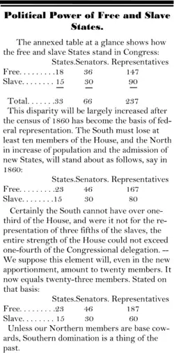 Ils considéraient que la seule solution était un réengagement pour le travail libre, et un effort pour arrêter l'expansion territoriale de l'esclavage. Les démocrates nordistes répondirent que ce n'était qu'exagération et que les républicains étaient paranoïaques. Leurs collègues sudistes parlèrent de sécession, le raid de John Brown en 1859 prouvant que les républicains étaient prêts à attaquer leur région et leur style de vie. En félicitant le président Lincoln nouvellement élu en 1860, Salmon P. Chase s'exclama : « L'objet de mes vœux et travaux depuis dix-neuf ans est accompli par le renversement du Slave Power », ajoutant que la voie était désormais claire « pour l'établissement de la politique de la liberté » - ce qui n'arrivera qu'après quatre ans de guerre civile.
