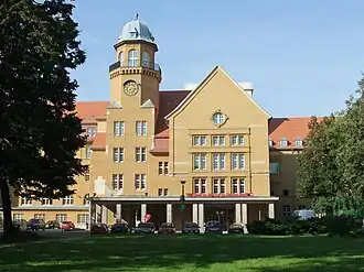 La construction de l'immeuble en forme de U eut lieu pendant les années 1910 et 1911, et il accueillit ensuite un gymnasium. Le , à la suite de la loi allemande des pleins pouvoirs de 1933 et dans le cadre de la Gleichschaltung, les nazis baptisèrent l'école du nom du ministre de l'éducation du peuple et de la propagande, Joseph Goebbels.