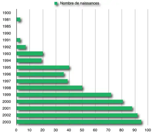 Le prénom Thelma a évolué durant les années, lentement et en faible nombre, en 2003, le prénom a grimpé seulement à 95 filles portant ce nom.