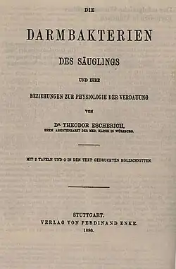 - Theodor Escherich, Die Darmbakterien des Säuglings und ihre Beziehungen zur Physiologie der Verdauung, Stuttgart, F. Enke, , 180 p. (lire en ligne)