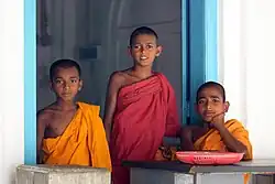 Trois jeunes novices dans un temple au Sri Lanka.