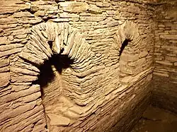 Une autre zone qui peut être visitée est l'ancienne salle de bains, de forme voûtée. Il y avait trois zones distinctes : le frigidarium, pour les bains froids ; le tepidarium et le caldarium, pour les bains chauds. Plus tard, cette pièce fut transformée en chapelle chrétienne.