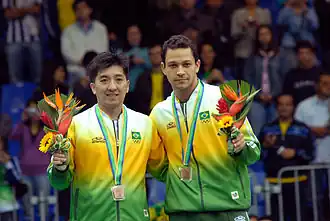Thiago Monteiro (à droite) médaillé de bronze en double en 2007 à Rio