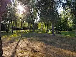 La ville compte plusieurs parcs et jardins urbains[27]. Parmi eux, le square de Verdun situé rue des Grammont présente un monument aux morts de la guerre de 1914-1918[28], les jardins de Saint-Jean se hissent entre l'ancien hôpital de Thiers[29] et la Durolle[a 1], le parc de l'Orangerie accueille une maison bourgeoise transformée en maison de retraite et une orangerie ouverte au public[30], le parc du Breuil — ancien camping transformé en parc public — accueille notamment la salle polyvalente Jo-Cognet[31]. Plusieurs châteaux situés sur la commune offrent des parcs aménagés ouvert aux visites. Le château de la Chassaigne et ses jardins français sont ouverts au public lors de la saison estivale[b 1].